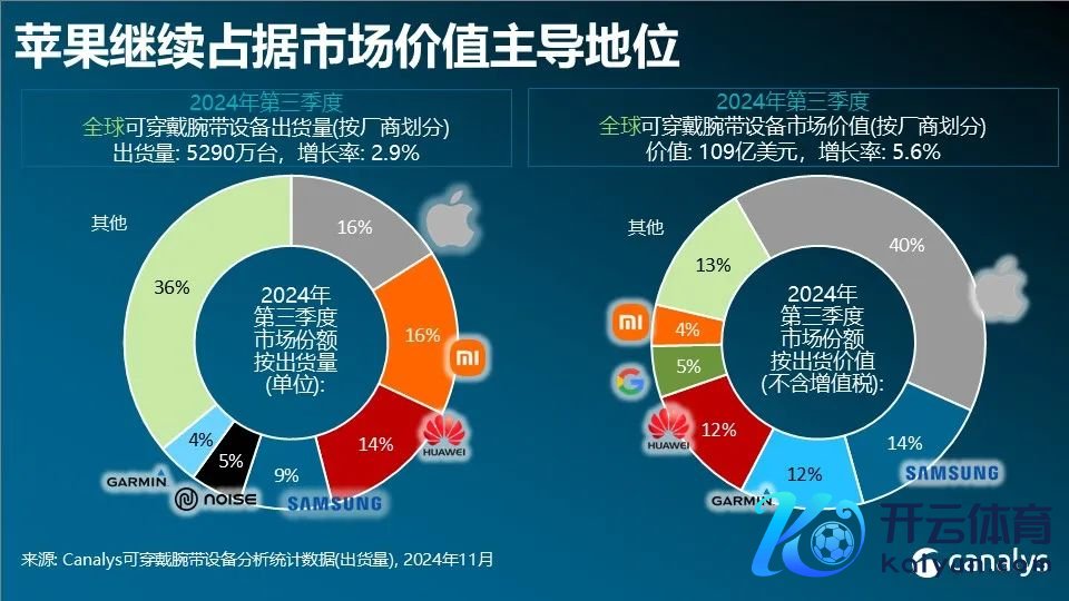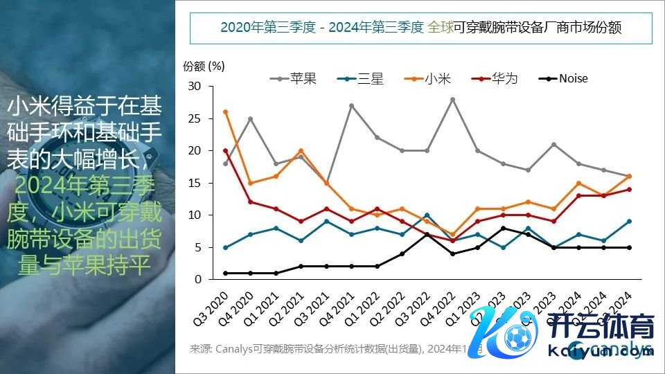 IT之家 12 月 5 日音问,Canalys 本日发布呈文称,2024 年第三季度,人人可穿着腕带缔造市集同比增长 3%,达 5,290 万台。