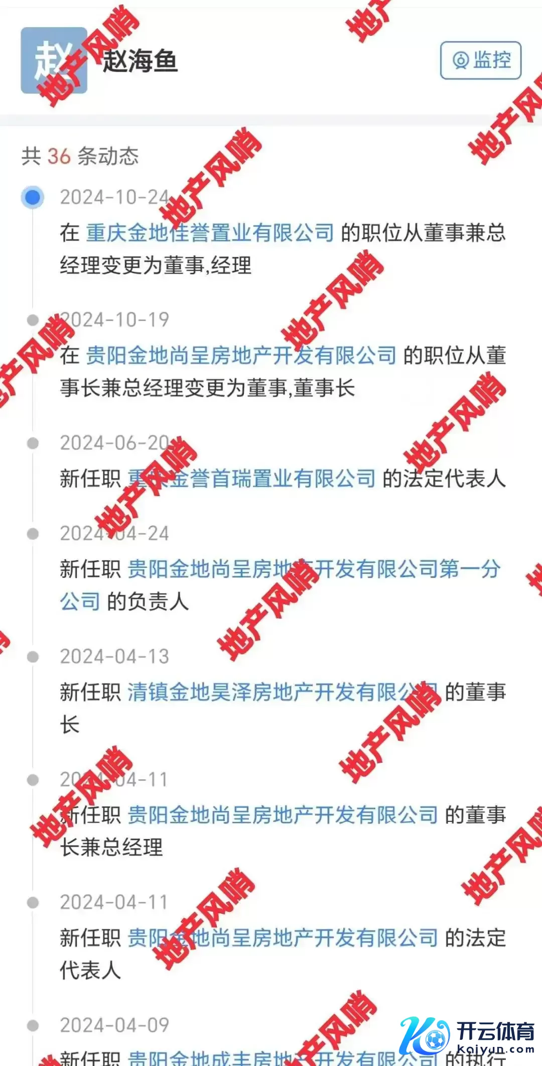 这个章程高忽地令一出,金地的高管赵海鱼就祸患了。凭证天眼查的信息显露,之前赵海鱼也曾在金地多个子公司的任职有新的变化。