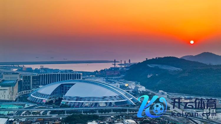 △12月20日,早霞烘托下的澳门东亚教学会体育馆。(总台央视记者张垚拍摄)
