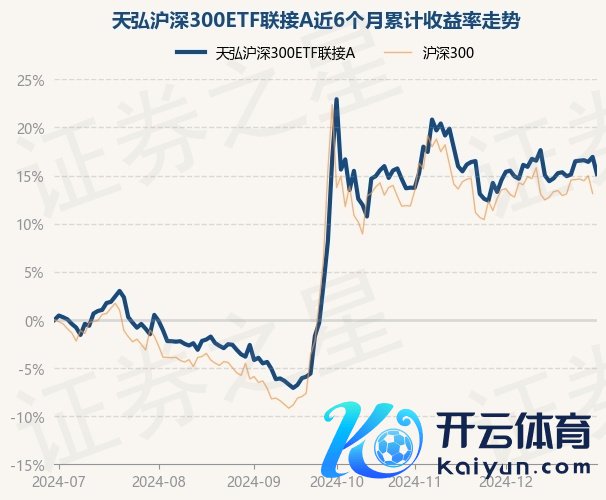 本站音信,12月30日,天弘沪深300ETF聚首A最新单元净值为1.3897元,累计净值为1.3897元,较前一来昔日高潮0.45%。历史数据走漏该基金近1个月高潮2.1%,近3个月高潮0.15%,近6个月高潮16.94%云开体育,近1年高潮18.86%。该基金近6个月的累计收益率走势如下图: