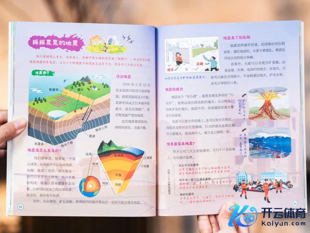 比如这个,用断层暗意图、圈层结构图,活泼地给孩子讲透地震是奈何发生的。
