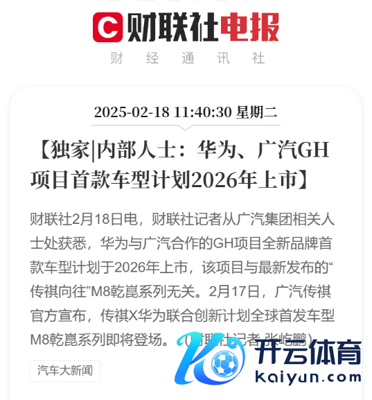 【CNMO科技音书】2月18日,据财联社报谈,广汽集团干系东谈主士清楚,华为与广汽相助的GH技俩全新品牌首款车型探究于2026年认真上市。这一音书象征着两边自2024年11月签署深入相助左券以来,在智能汽车边界的相助迈出了本体性的一步。
