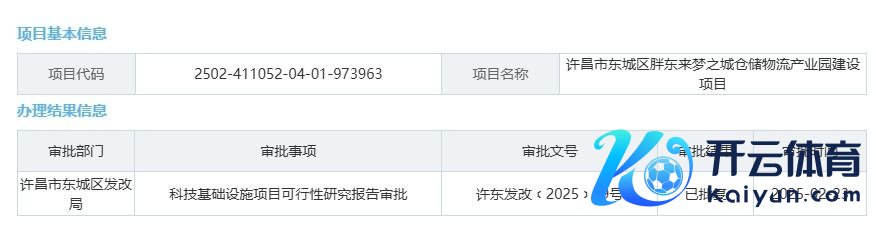记者预防到,胖东来梦之城仓储物流产业园建设花样可行性有计划酬金,已于2月23日通过许昌市东城区发改局审批。