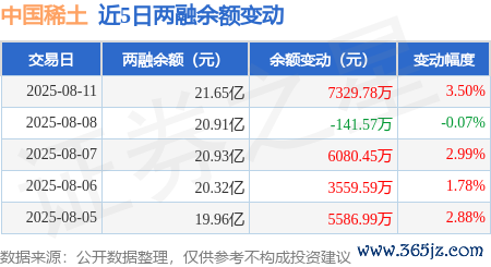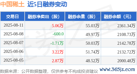 本站音问,8月11日,中国稀土(000831)融资买入3.6亿元,融资偿还2.9亿元,融资净买入7077.17万元,融资余额21.41亿元,近20个往当年中有12个往当年出现融资净买入。